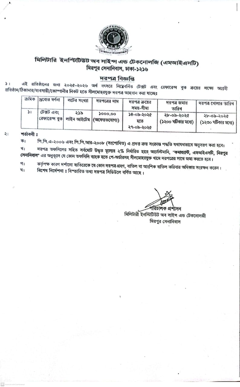 Tender Notice for Text and Reference Book 2025-26